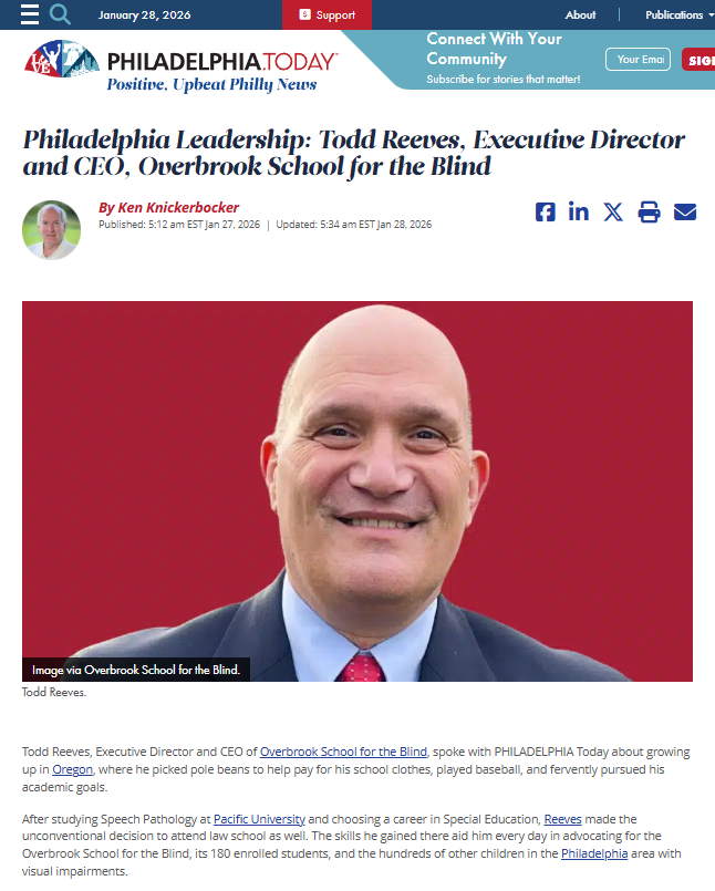 Philadelphia Leadership: Todd Reeves, Executive Director and CEO, Overbrook School for the Blind - Philadelphia.Today (2026)